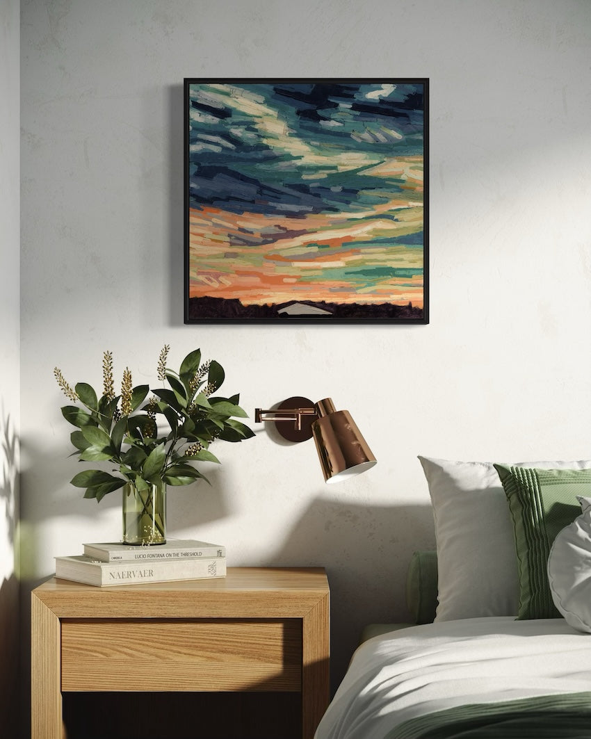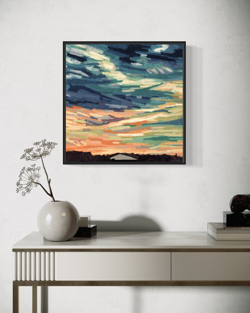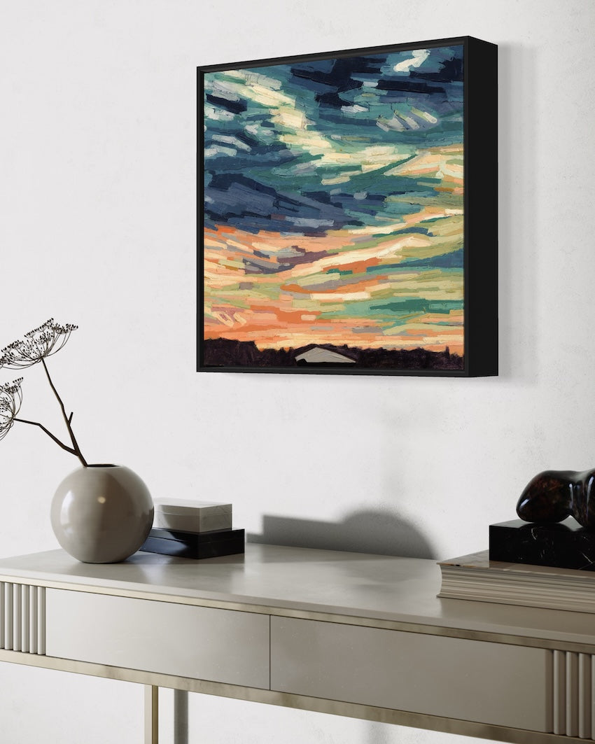 My abstract cloudscapes celebrate the hope and joy found in dramatic skies, often inspired by vivid sunsets and sunrises.