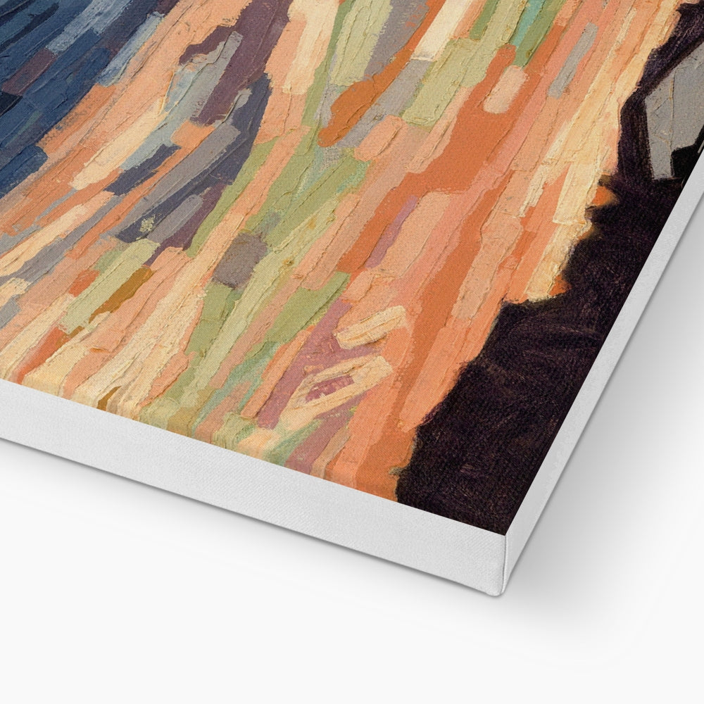 Each piece begins with a detailed underpainting, later transformed with thick impasto layers applied using palette knives. This technique creates bold, geometric forms and simplified colours, blending vibrant hues with textural depth to evoke energy and emotion.