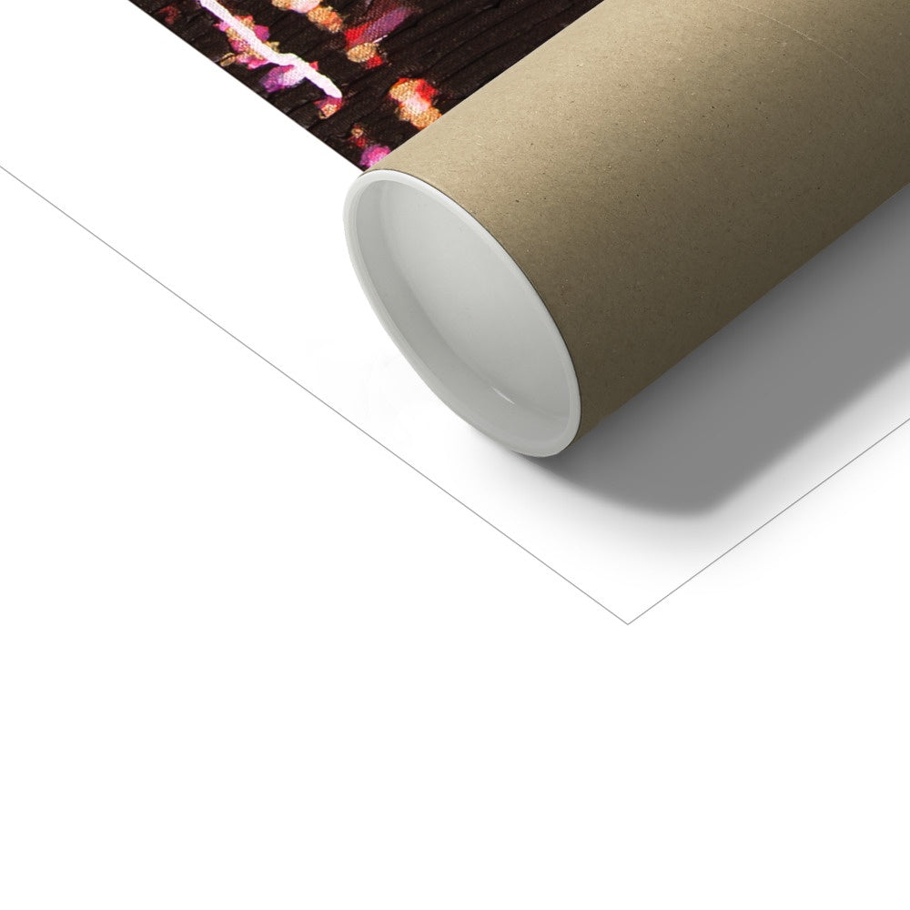 This is an unframed print, perfect for inserting into your own frame. Arrives to you rolled in a tube or similar.