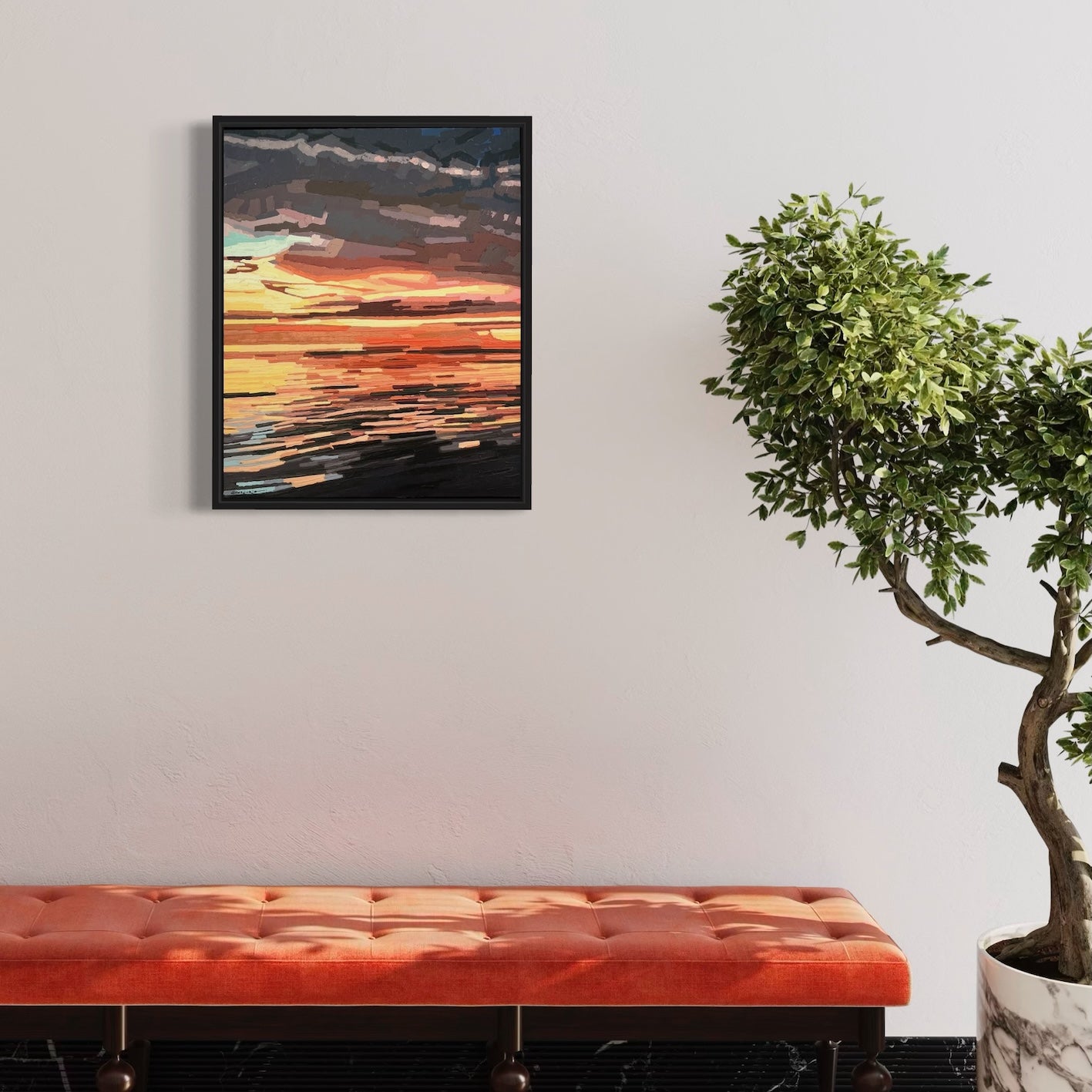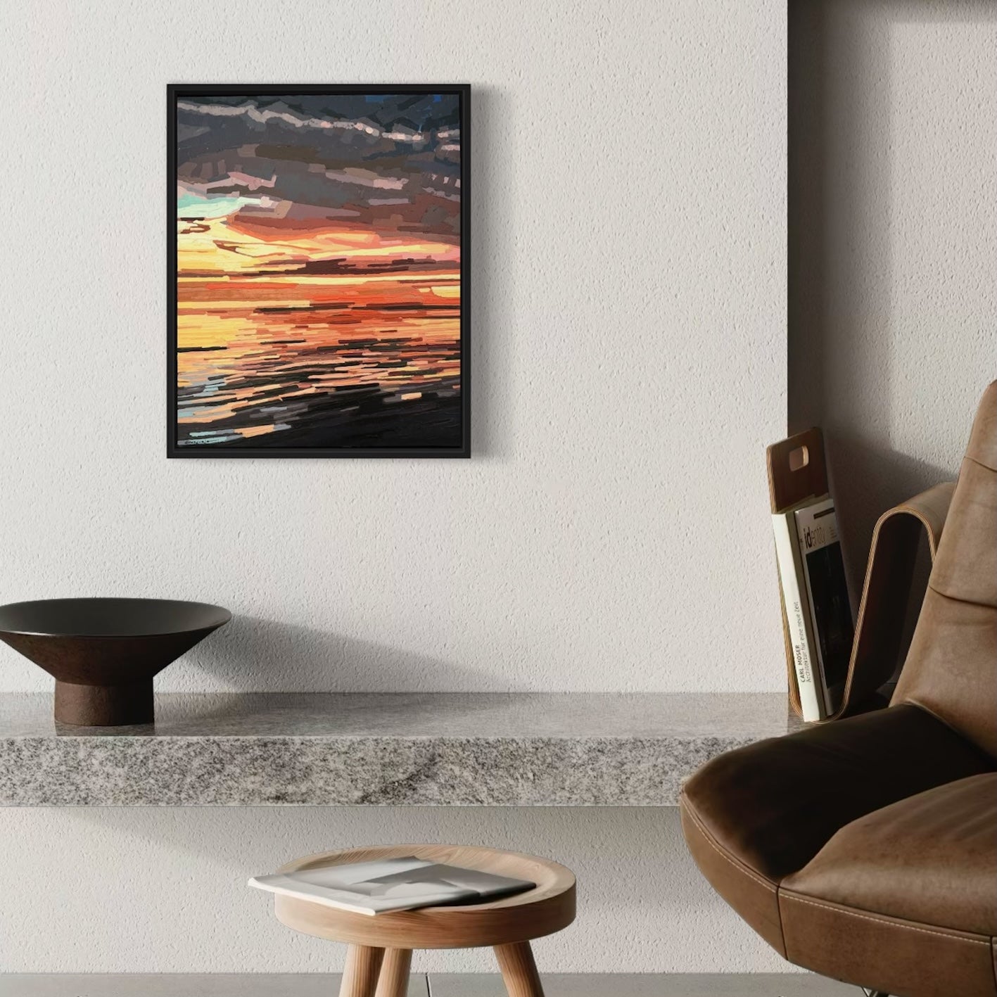 Premium acrylic on canvas, framed in a removable wooden tray frame.