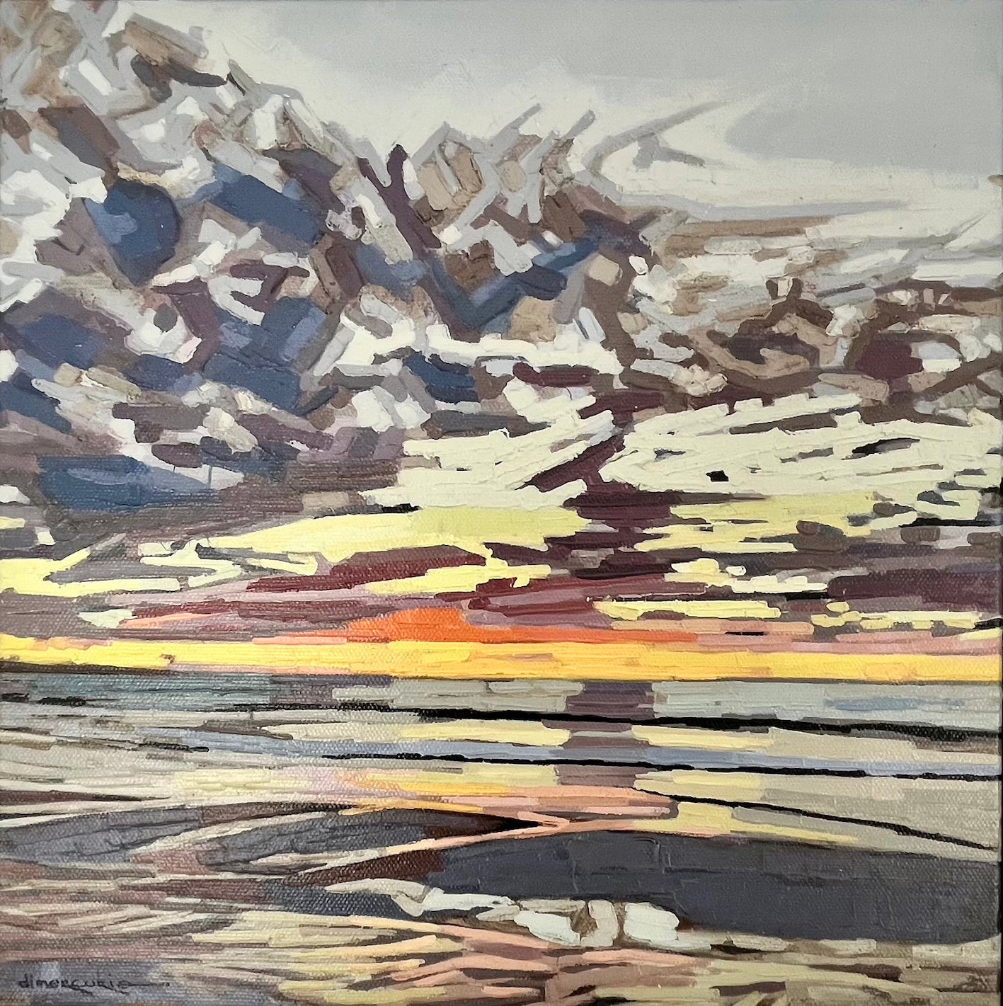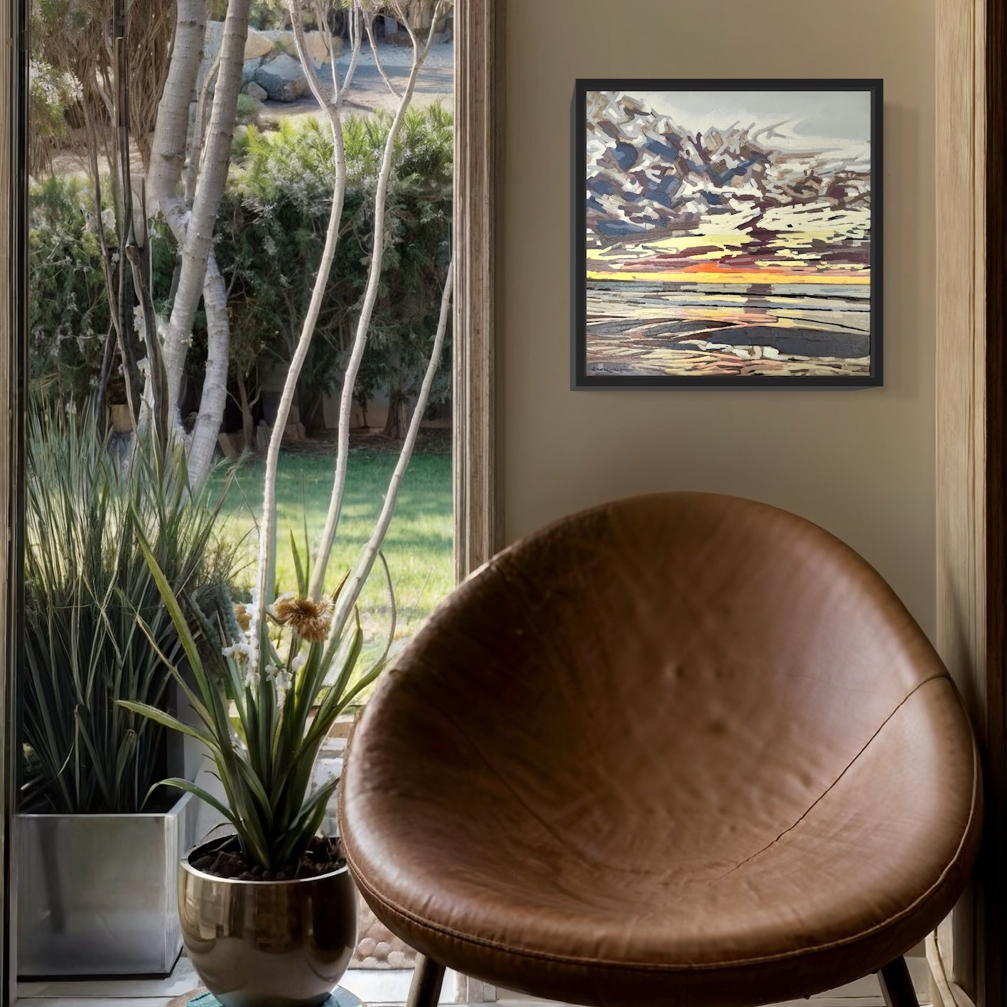 Inspired by a glowing sunset over sandbanks at low tide, this textured cloudscape is full of movement, light, and rich, painterly detail.