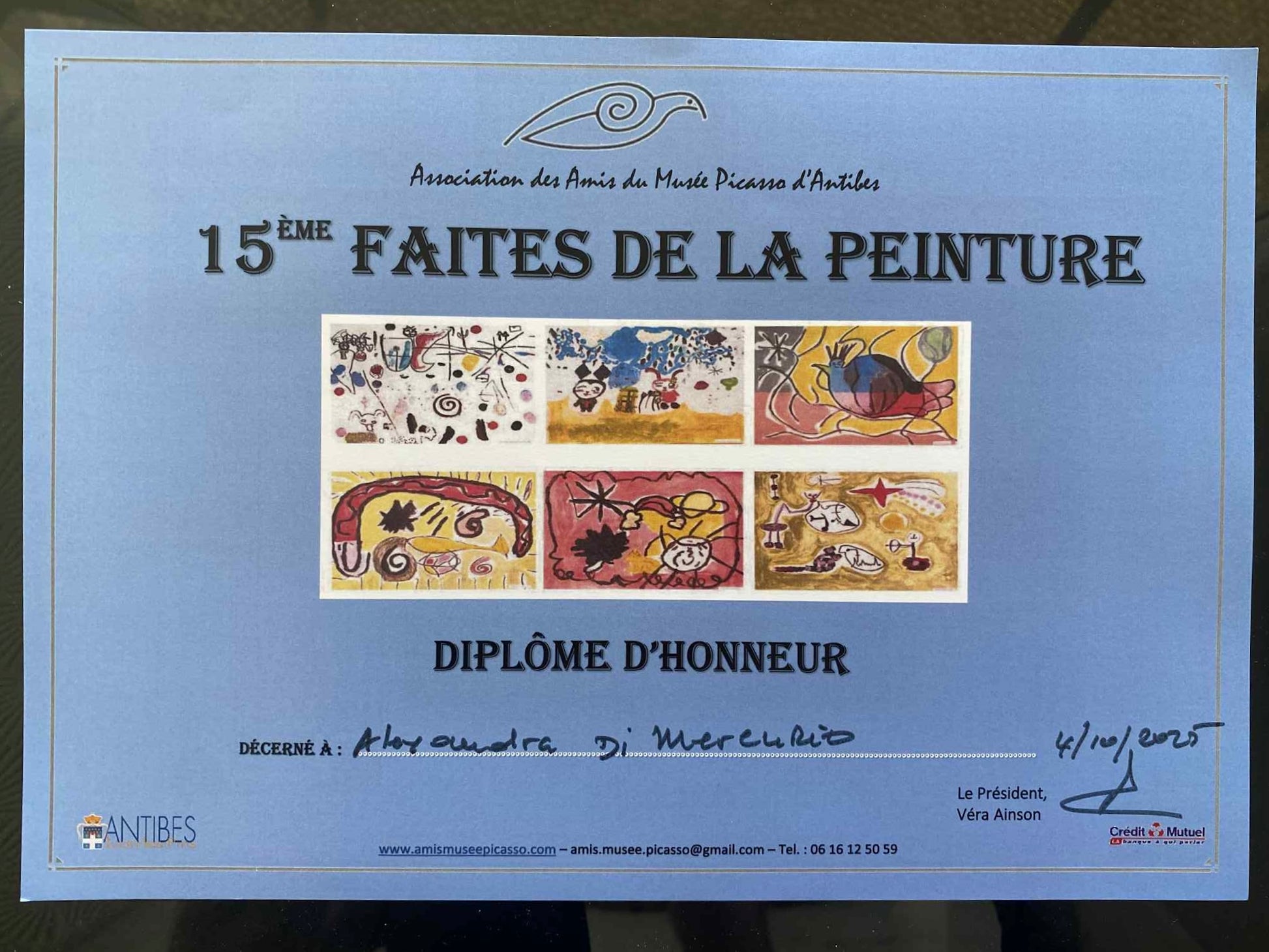 Exhibited in Antibes, France October 2025 with the Association d'Amis du Musée Picasso and excitingly was awarded a Diplôme D'Honneur (Merit Award).