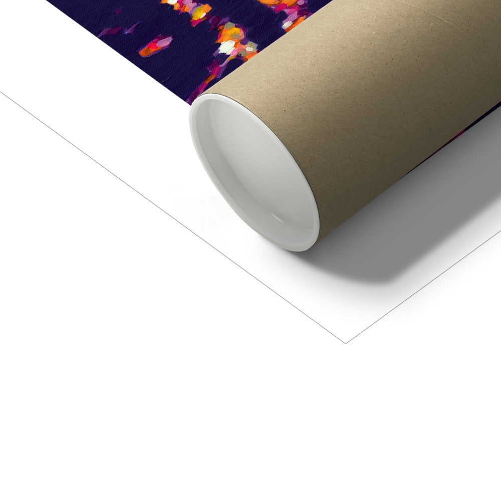 This is an unframed print, perfect for inserting into your own frame. Arrives to you rolled in a tube or similar.